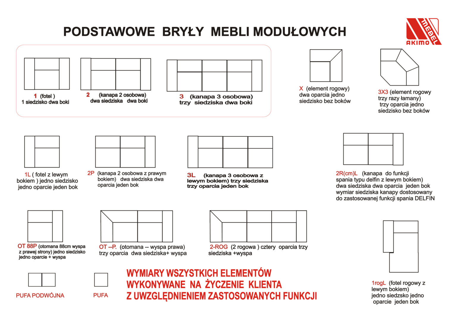 - układ modułów (jeśli to narożnik).